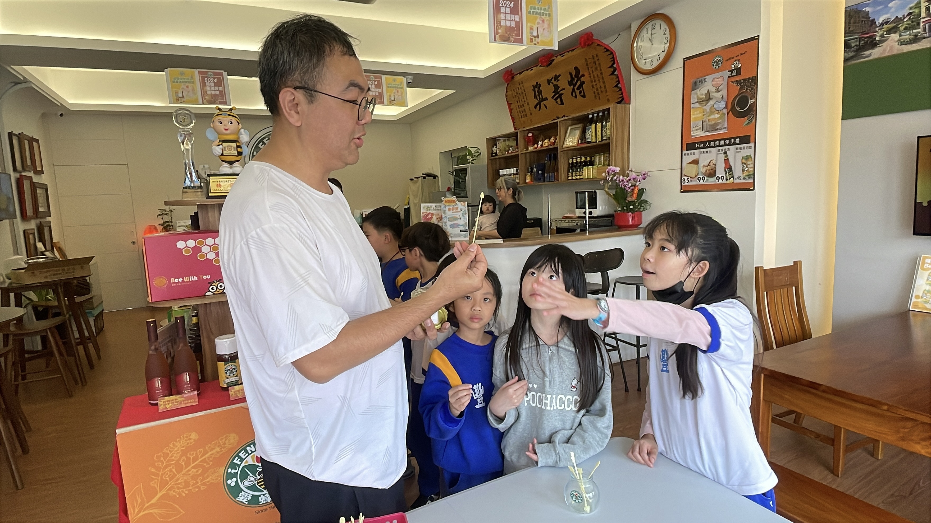 採蜜體驗:親手收穫甜美成果在專業人員的教導下,學習傳統的離心機是如何從蜂巢中提取新鮮的蜂蜜。當金黃的蜜汁緩緩流出,孩子們的臉上洋溢著滿足的笑容。這不僅是一次動手實踐的機會,更讓他們體會到勞動的價值與甜美的回報。 產品試吃與手作:品味蜂蜜的多樣風味活動的最後,孩子們有機會品嚐各種蜂蜜製品,從純正的蜂蜜到蜂蜜蛋糕、蜂蜜醋等,感受蜂蜜在不同形態下的美味。此外,還可以參與簡單的蜂蜜手作活動,將親手製作的蜂蜜產品帶回家,與家人分享這份甜蜜。 愛蜂園為學生們打造了一個近距離接觸自然、學習生態知識的平台。這裡不僅是蜜蜂的樂園,更是孩子們探索自然奧秘的起點。 |